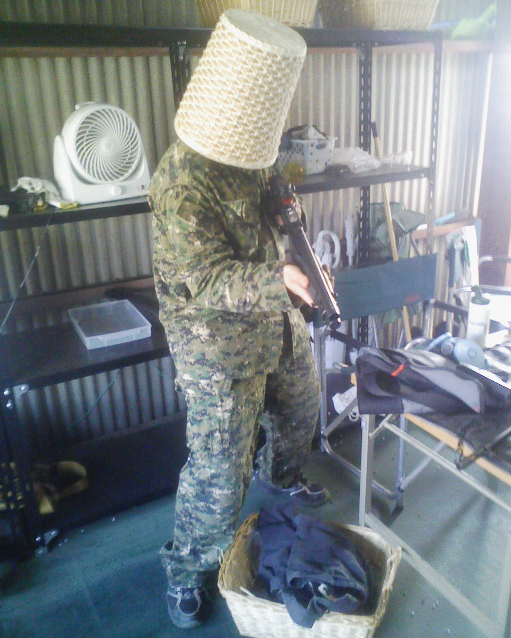 もやっきさん(以前一緒に釣りに行ったことがある秋月さん)と水戸のサバゲ会場に行きました。 もやっきさんの所属していらっしゃる漫研の方々の企画に同席参加することになったのです。 久しぶりのサバゲーでしかもインドアでした。 インドアは初めてでとても楽しいものでした。 というより自由にショットガンをぶっ放せるのが非常に楽しかったです。 そんな楽しい中、一人異質な人間がいました。 こんなんです↓ 迷彩虚無僧です。非常に見通しが悪いです。 非常におかしいのですが、なぜかしっくりきます(多分私だけ) 手にはショットガン持ってます。 まぁ、私自身なんですけどね。 次のサバゲにもこれ持って行きます。面白いです。 久しぶりのサバゲーはとっても楽しかったです。 もし次も機会があったら是非、行きたいものです。 そんなわけで、今日は非常に疲れました・・・ 今日は早めに寝ることにしましょうか。