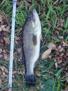 今日のポイントは前回と同じとある水門排水機場です。 ここは寒くても結構フナやコイがあがるらしく、ワクワクしながらの釣行です。 いつもどおりの「真底」と「いもグルテン」の組み合わせでエサ打ちを開始しました。 ・・・しばらくすると静止を保っていたウキが次第に僅かに動くようになりました。 波も立っていなく、風の影響もないため、間違いなく魚が寄ってきた証です。 しかしなかなか力強いアタリはきません。本当に一瞬だけの「ツン」や僅かに「モゾッ」とするだけです。 たまに「クイッ」と引き込まれることもありましたがいずれもアワセは決まらず。 そこで、大物に対応するためにかなり太めのラインを使っていましたが少々細い仕掛けにチェンジしてみることにしました。 すると一気にアタリが取りやすくなりました! ハッキリしなかったアタリがほとんどハッキリするようになりアワセも決まるように! あっという間に2匹のフナを釣り上げることに成功! 写真はありませんが1匹目が18cmほど、2匹目が20cmほどでした。 それからもコツコツと釣り上げ続け、4匹目を釣り上げて再度エサ打ちを再開したときに今までとは違う現象が起こりました。 私はドボンの釣りなのでいつもウキはまっすぐに(流れによっては斜めになりますが)立っている状態でスーっと沈んでいき、ウキの目盛りの一定の範囲で沈みが止まるようになっています。 しかし、そのときはウキが一定の範囲を超えて沈み続けました。しかも途中から少し斜めに沈んでいっています。 「ん?」と思った私は反射的に竿を立ててアワセの動作をしました。 すると一気に引き込んできました! それを見ていた妹もびっくりです。 最初は一気に走られてしまい「切られる!」と思いましたが何とか耐え抜き、こちらに徐々に寄せることに成功しました。 しかし、魚の姿はそのとき妹に聞いてみましたが「分かんない」と帰ってきました。 この釣りで掛かるのはフナ、コイ、ニゴイ、ナマズくらいしかいません(稀にオイカワも掛かりますがサイズの関係で一瞬で識別できます)。 それら全てをすぐに見分けることが出来る妹が分からない・・・全くの正体不明の魚が掛かっています。 やり取りをしている私も一瞬姿を見ましたが、正体は分かりませんでした。 しかし、相手は必死に抵抗してきます。寄せたと思ったらまた離されます。 それでも何とか取り込み用の網に収まった正体不明の魚。 水から上げてその姿をしっかりと見てみました。 それは信じられないヤツでした・・・ そりゃ正体不明にもなります。専門に釣ってないうえに今までで釣り上げたのはこれを含み2匹目です。見分けられません。 そして驚くべきはサイズです!43cmくらいあります! このサイズって確かルアー釣りでも大満足クラスのサイズだったと思います。 意外な魚が釣れました。 そして意外と目が悪そうではないですね。むしろ可愛いかもしれません。 あとから聞いたことですが妹が言うには私が仕掛けを投入した直後、その付近で僅かに波が立っていたらしいです。 恐らく偶然通りかかった(あるいは私が打っているエサに寄ってきた魚に寄ってきた)時に沈む(動く)エサに反応して食ってきたのだと思います。貴重な体験です。引きも同サイズのコイと違ってガンガン引いてきました。 コイやフナとは違った引き味が最高でした。 その後はしばらくアタリはなくなってしまいました。 どんどん暗くなっていき、ウキの視認が困難になってきたときに僅かにウキに動きが! アワセると見事に針掛かり!フナが釣れました。しかし暗かったのですぐにリリース。 更にエサを使い切るためにもう一度投入しました。するとまたアタリが! 今度も針掛けに成功しフナを釣ることが出来ました。やっぱりすぐにリリース。 土曜日の釣果はフナ6匹と巨大ブラックバス1匹でした。 この時期にこんなに釣れるとは思いませんでした。また行こうと思います。 そして、またまた渓流の釣りに思いをはせるようになりました。 そしてなんとテンカラ釣り用の竿を購入してしまいました!来年、行きたいですね。 それまでに数々の渓流釣りの知識を身につけておきたいです。渓流では、知識がないと何も出来ずに終わってしまいます。 渓流っていいですよね~