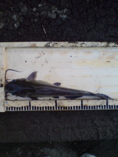 今まで全然いけなかったのですが今日ようやく行けました! いつもの川で、階段状のとこでバランス仕掛けで釣り開始! 最初は全然アタリがありませんでしたが遂に妹が巨大ナマズを仕留める! 写真はありませんがサイズは46cmくらいでした。 そして私のほうにも待望のアタリが! ・・・が、糸を切られてしまいました・・・ しかしまたすぐにアワセに成功! んでも今度はバラしてしまいました・・・ それからは全然アタリが来ませんでした・・・ ざっと3時間ほどしたらようやくアタリがでました! アワセも決まりましたが、物凄く引き込んできます! 何とか引き寄せて取り込みに成功! しかも30cmオーバーですよ! 34cmくらいですかね? その後もすぐにアタリが来ました! サイズは19cmくらいですね。 引きはそこまで強くありませんでした。 それから1時間ほどしてまたアタリが! しっかりアワセて取り込みました! しかしかなりデカイです! 初の40台ですよ! 43cmくらいでした。 今日は合計4匹の釣果でした。 ちなみにヘラブナは家で飼っている魚たちの仲間入りを果たしました。 ハヤはビクに空いていた穴から脱獄していました・・・ 次に行くまでには直しとこうと思います。 家では今まで私が釣ってきた魚たちの一部が泳いでます。 なかにはフナ、コイなどが泳いでいます。 コイは20cm位のヤツから30くらいのものまでいます。 観察しているといろいろ魚について分かってきておもしろいですよ。 |