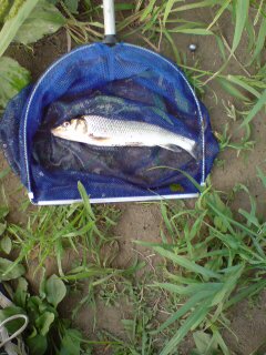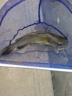 最初は自分、秋さん、白さんの3人の釣り師での予定でしたが、諸事情により自分と白さんの2人でスタート! 朝からの釣りは初めてで、初めてのフィールドだったのでとても楽しみでした。 実際、魚の動きがとても活発でした。 水門付近に陣取り実釣開始! 自分は餌釣り(餌はマルキューの「真底」)でもう白さんはルアーでのバスフィッシングです。 自分はセオリーどおり、餌打ちを開始。しばらくするとすぐに白さんにヒットが! 「ブルーギルだぁ~!」 自分は久しぶりに見ました。一緒に釣りしてる方が釣れると、自分も嬉しくなります。 そして餌打ちを続けている自分にもついにウキを消しこむアタリが!すかさずアワセる! 見事に12cmのウグイを釣り上げました。 そして、写真も見事に撮り忘れました。 昼飯食べて、秋さんと合流!ようやく当初の目的である3人での釣りが実現できました。 それからはポツポツとアタリが出てくる。が、空振りも多い。しかもバラしがとても多い。 今までバラしなんてほとんどしたことがなかったのに今日はバラしのオンパレードでした・・・ 大物が掛かってもハリス切られたり・・・ まだまだ自分は修行不足です・・・ 基本的には10cmほどの小魚が多いようです。自分の近くまで寄ってくるものもいました。 少しだけ写真を撮りました。 魚と一緒に写ってるのは管理人です。 写ってるシルエット。これも管理人。帽子被ってますからなんか変に見えます。 他にも釣れはしたのですがそのほとんどがスレアタリで釣れてしまったもので自分の未熟さを痛感・・・ スレアタリは釣り人にとっても魚にとっても全くいいことではありません。精進します。 途中参戦の秋さんはなんと自作練り餌で鯉2匹を釣り上げました。サイズは18cmほどと、いいサイズです。 白さんも、3匹のギル(1匹は大物でした)と本命であるバスも釣り上げました。 都合もあり、この日の釣りは早めに切り上げてしまいましたが、みんな釣れてとても楽しかったです。 また機会があったらみんなで釣りに行きたいです。 んで、管理人は最後に変えるときに足を滑らせ川に落ちるという荒技を(したくないのに)してしまいました・・・